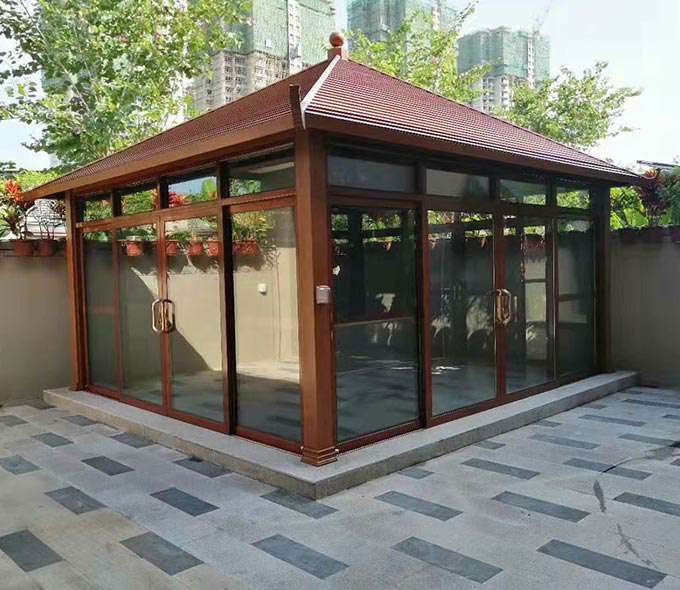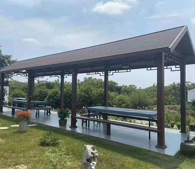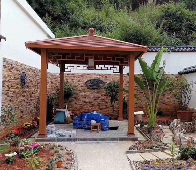 厦门维安绿色农业发展有限公司凉亭系列产品是采用高强度铝合金为原材料,经酸洗铬化,电泳或静电喷涂,木纹转印处理后,精密定制设计,保障安装。它具有防水防潮,不膨胀不变形,防腐蚀,具有逼真的木质感。成为别墅住宅及市政园林等建筑美丽的风景。